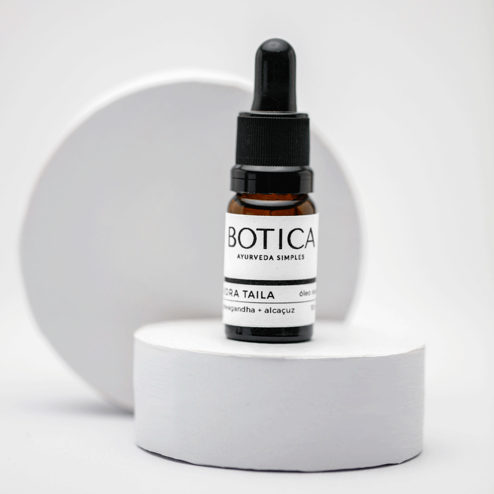 Óleo nasal de gergelim medicado com ashwagandha (withania somnifera), gotu kola (centella asiatica), brahmi (bacopa monnieri) e yashtimadhu (glycyrrhiza glabra), combinação que promove aterramento, equilíbrio e fortalecimento do sistema nervoso central.